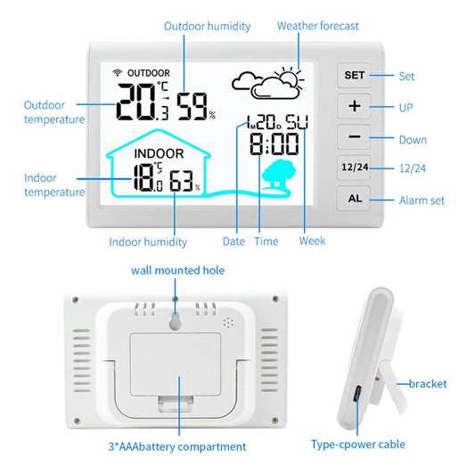 TS-H127G Multifunction Wireless Weather Station Color Display Alarm Clock Digital Thermometer Hygrometer