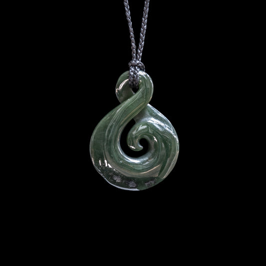 Jade handcrafted Pikorua twist Pendant with Koru Necklace