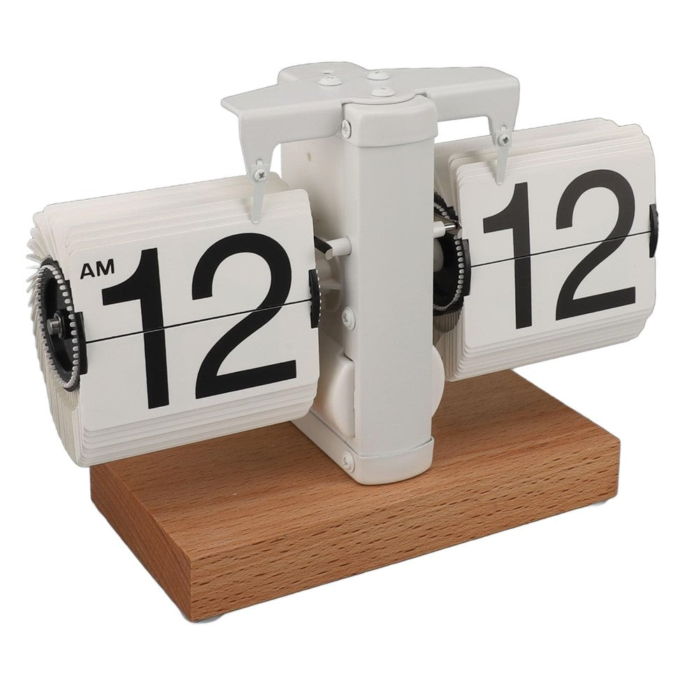 • 【Premium Materials】Features a quartz movement for precise timekeeping, with a moisture-resistant and rust-proof stainless steel and ABS plastic body. The base is made of high-quality wood, while the flip pages are PVC for durability