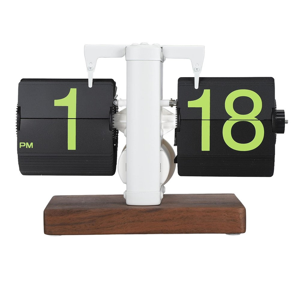 Automatic Flip Clock Retro Home Table Clock Single Foot Stainless Steel Quartz Movement Flip Clock Square Wooden Base
