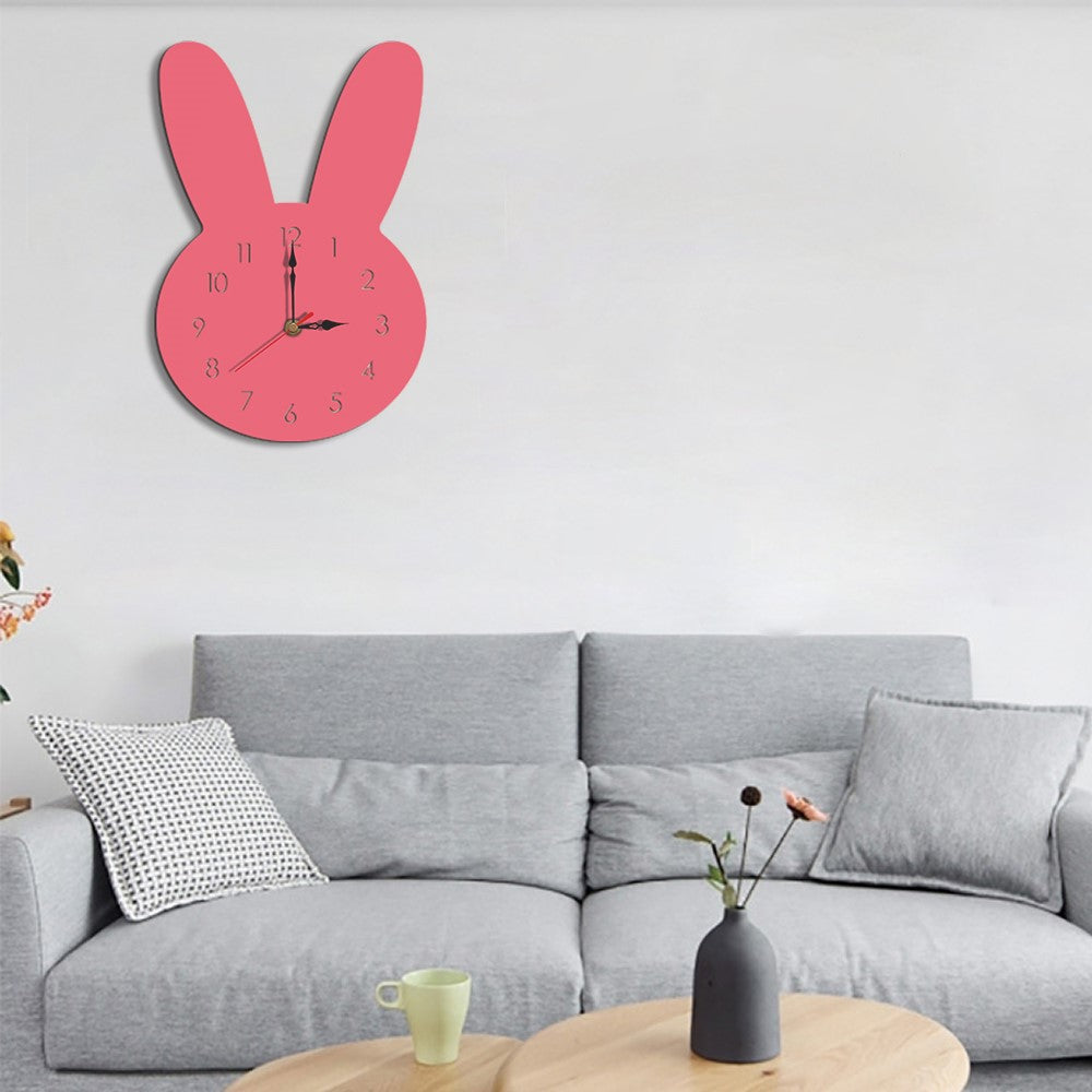 Cute Rabbit Decorative Quartz Wall Clock Battery Operated Silent Clock for Living Room, Bedroom