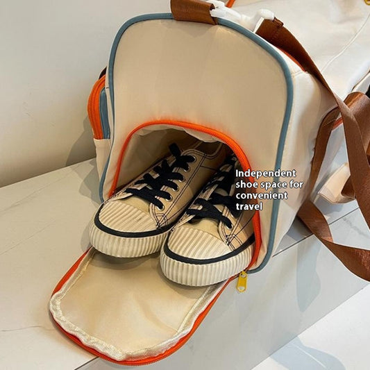 MZJ2133 Color Splicing Travel Duffel Bag with Shoe Compartment Large Capacity Weekender Carry On Gym Bag