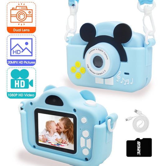 A5 2.0-inch IPS Screen Mouse Shape Kids Camera Cute Cartoon Digital HD Dual Lens Camera