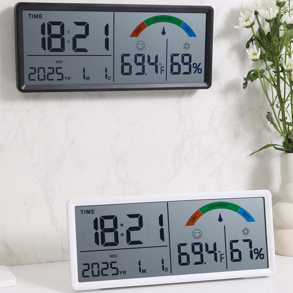 9554 LCD Digital Wall Clock Temperature Humidity Display Multi-Function Large Screen Clock