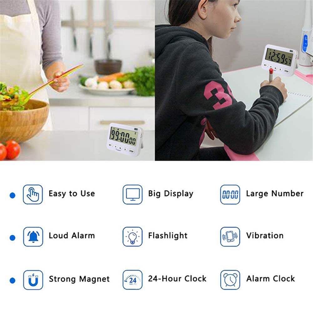 Digital Kitchen Timer Big Digit Count Down & Up Timer Memory Vibration Flashlight Loud Alarm with Magnetic Back