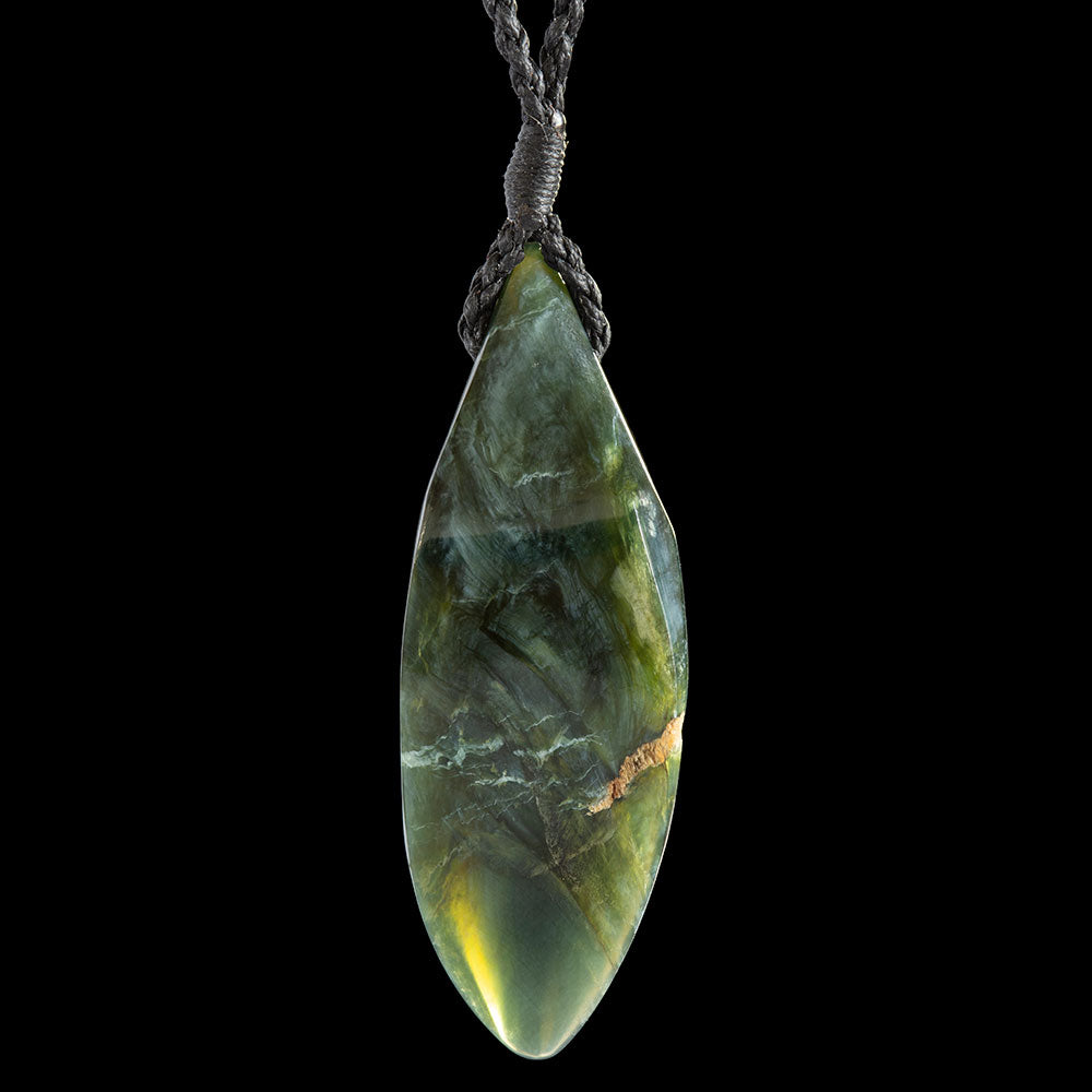 A large hand crafted New Zealand Chatoyant Tangiwai roimata drop pendant by Malcolm Cox.