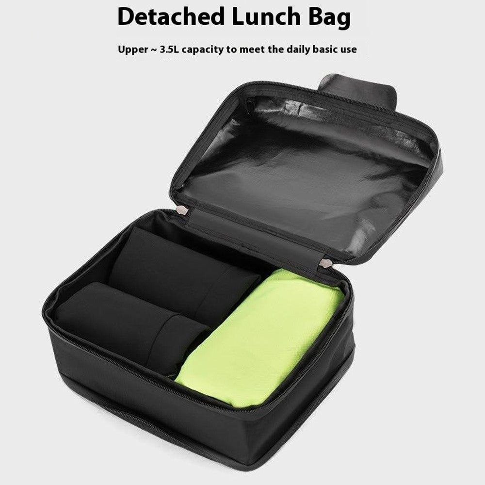 • 【Dual Compartments】Upper compartment offers approximately 3.5L capacity, while the lower compartment provides a spacious 14L, allowing for organized packing.