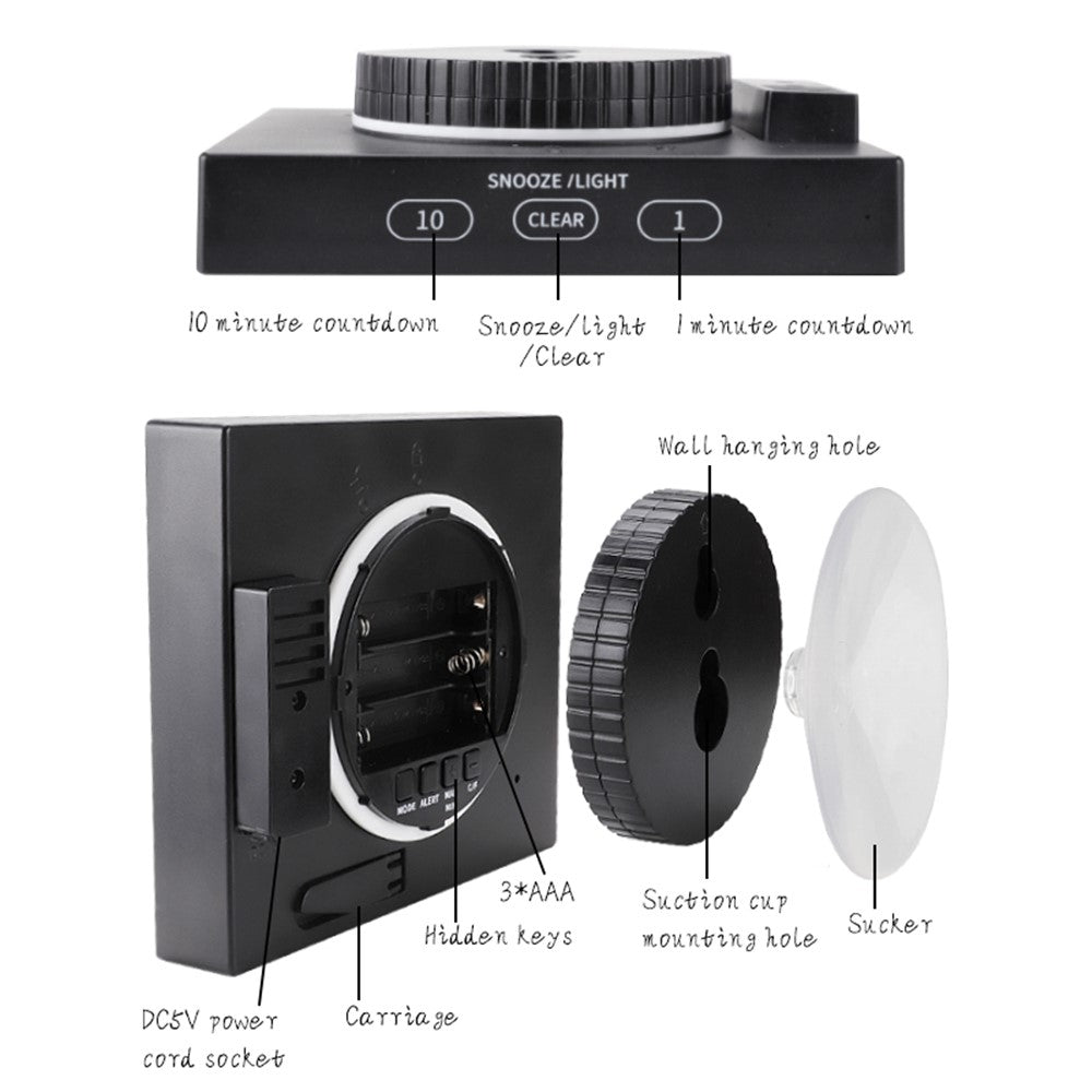 TS-WP10 Color Screen Alarm Clock Temperature Humidity Display Waterproof Bathroom Clock with Suction Cup