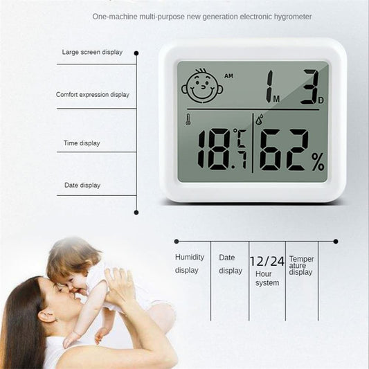 0.8cm Ultra Slim Digital Thermometer Smile Face LCD Display Hygrometer for Home Office