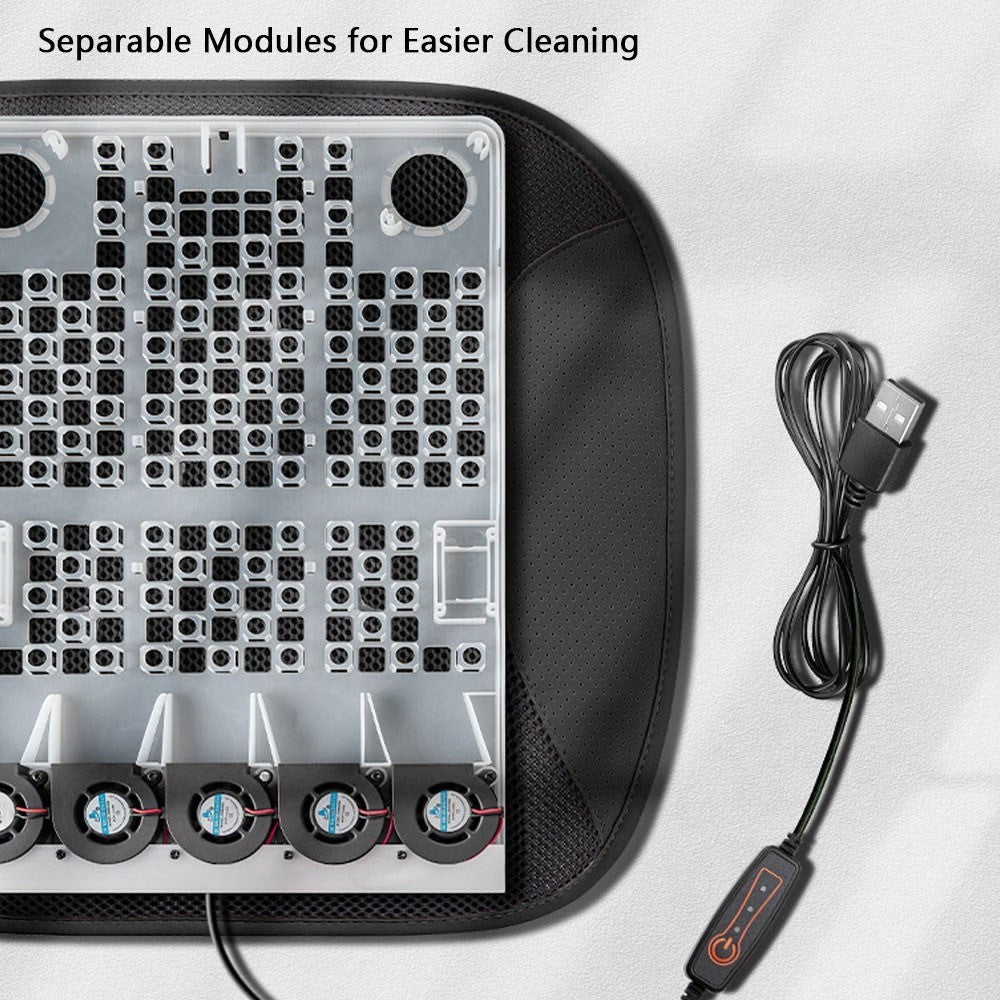 Car cooling seat pad, strong wind, help you quickly dissipate the heat in summer. USB plug and play, three-speed wind adjustable, suitable for car seats, home and office chairs, etc.