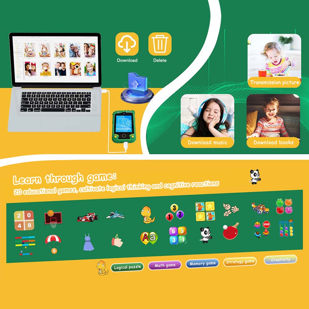 - 【Multifunctional Entertainment】Includes camera, music, voice recorder, games, flashlight, alarm clock, and more to keep kids entertained and learning