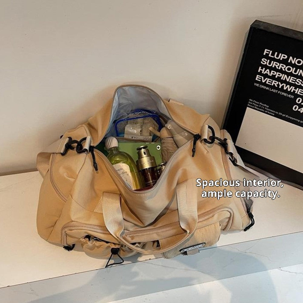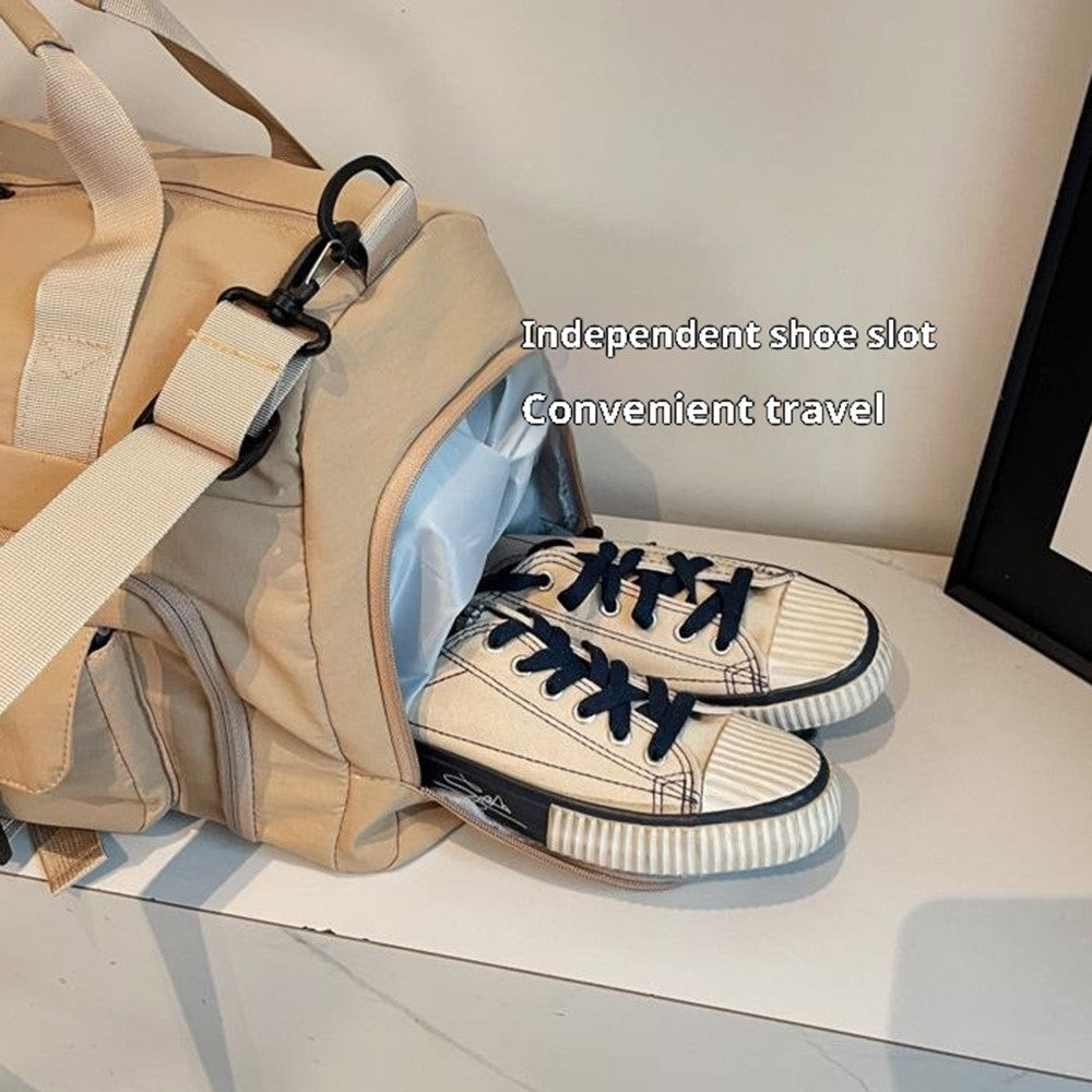 • Features: Wet and dry separation, independent shoe compartment, zipper pockets
