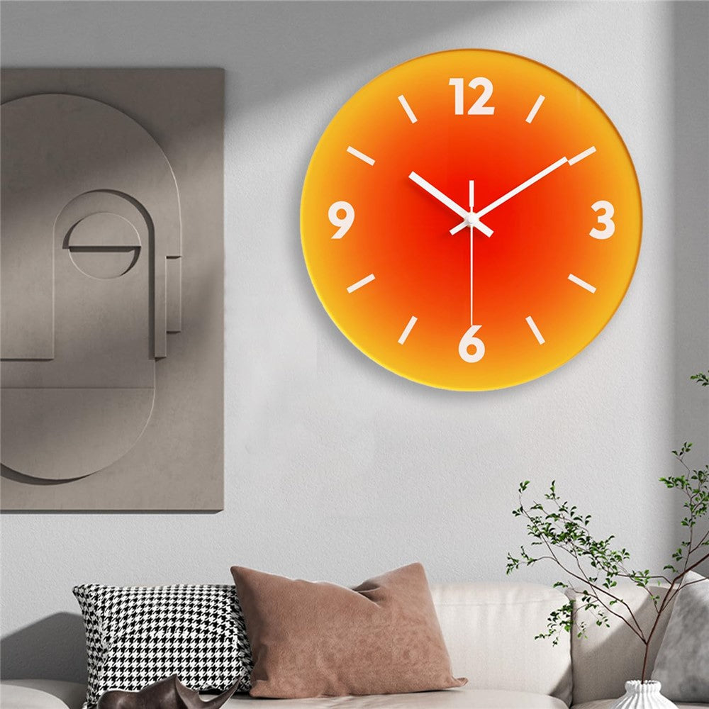 12 inch Sunset Wall Clock Battery Operated Gradient Glass Silent Clocks for Home (No Battery)