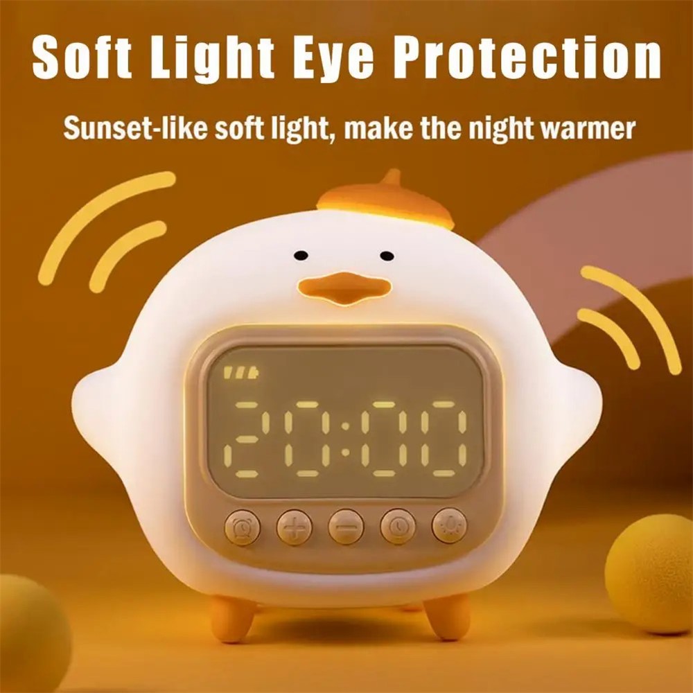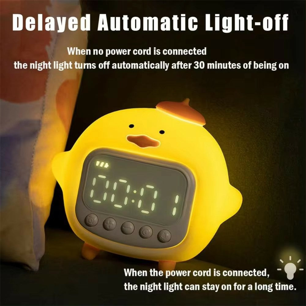 C15 Hugging Duck LED Display Alarm Clock Stepless Dimmable Soft Silicone Night Light