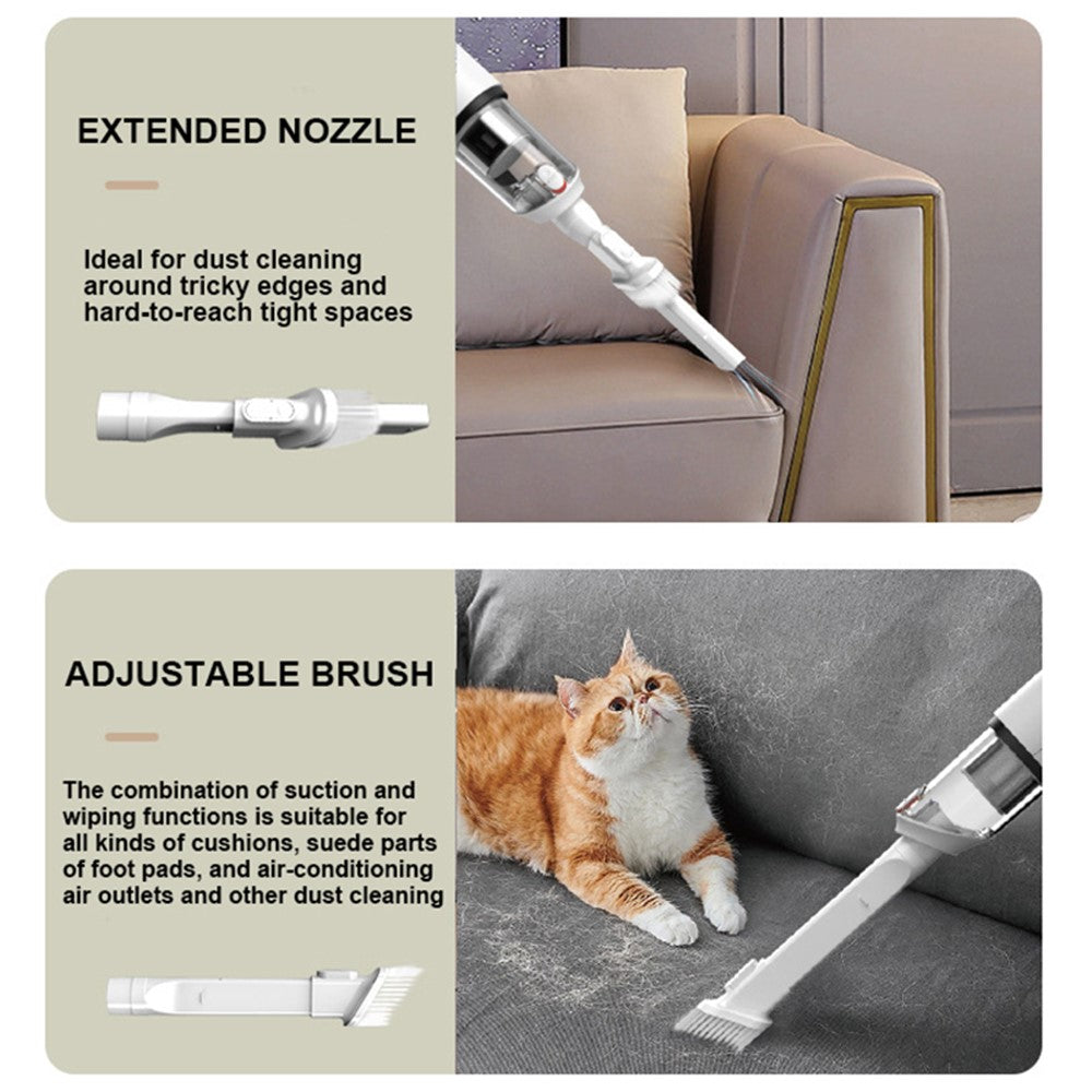 • Adjustable brush, suction and wipe dual function, suitable for a variety of cushions, foot mats, and air conditioning vent and other dust cleaning