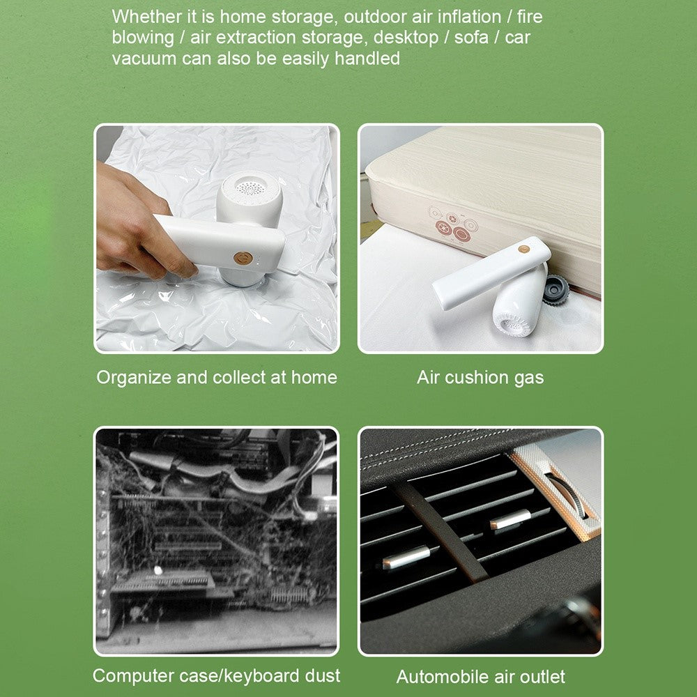 • It can pump air to the vacuum bag, and pump air to the swimming ring, air cushion bed, balloon, air cushion, inflatable toys