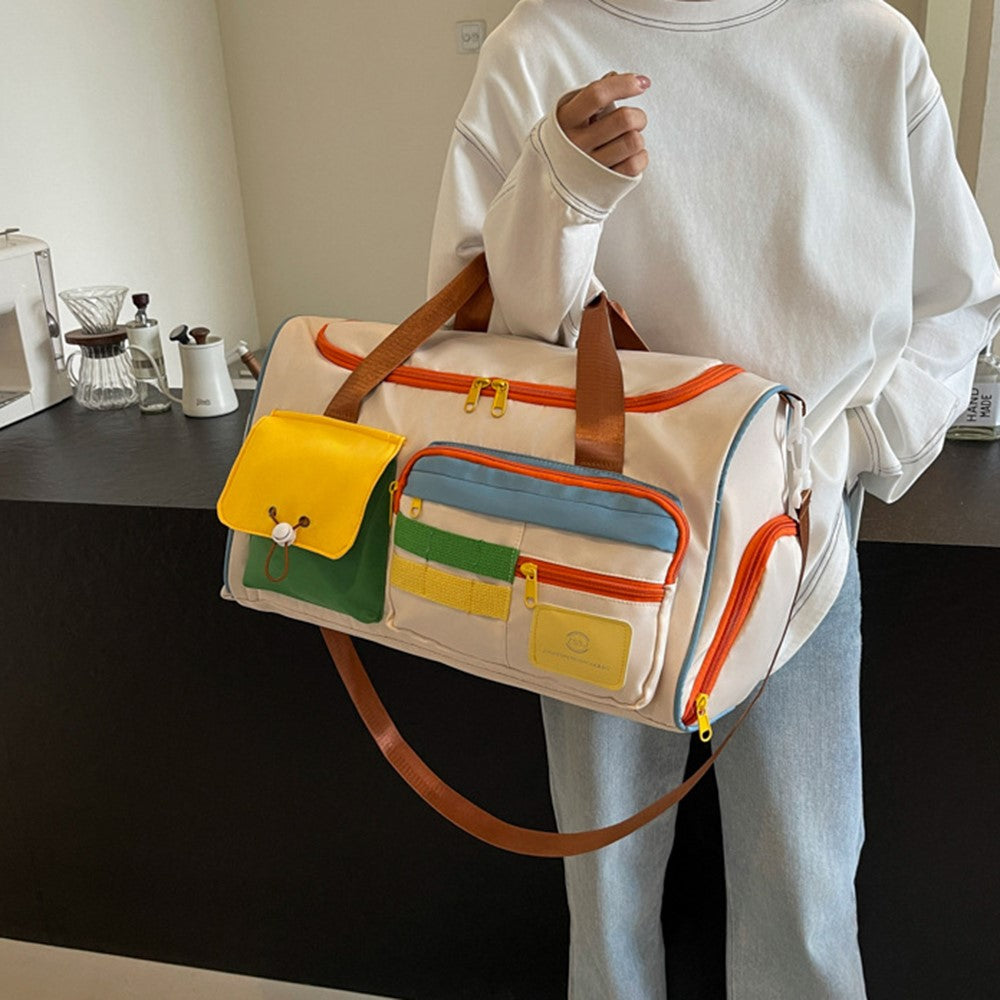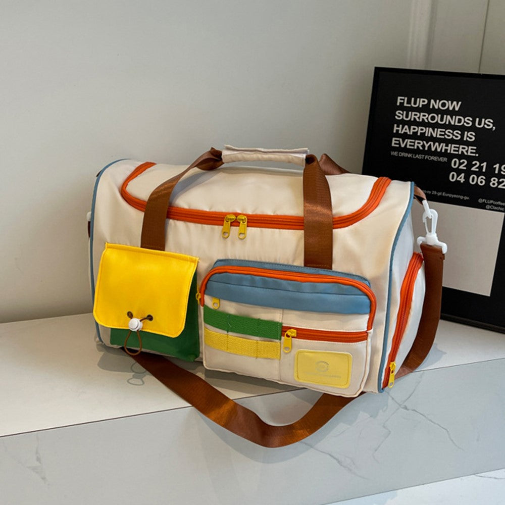 MZJ2133 Color Splicing Travel Duffel Bag with Shoe Compartment Large Capacity Weekender Carry On Gym Bag