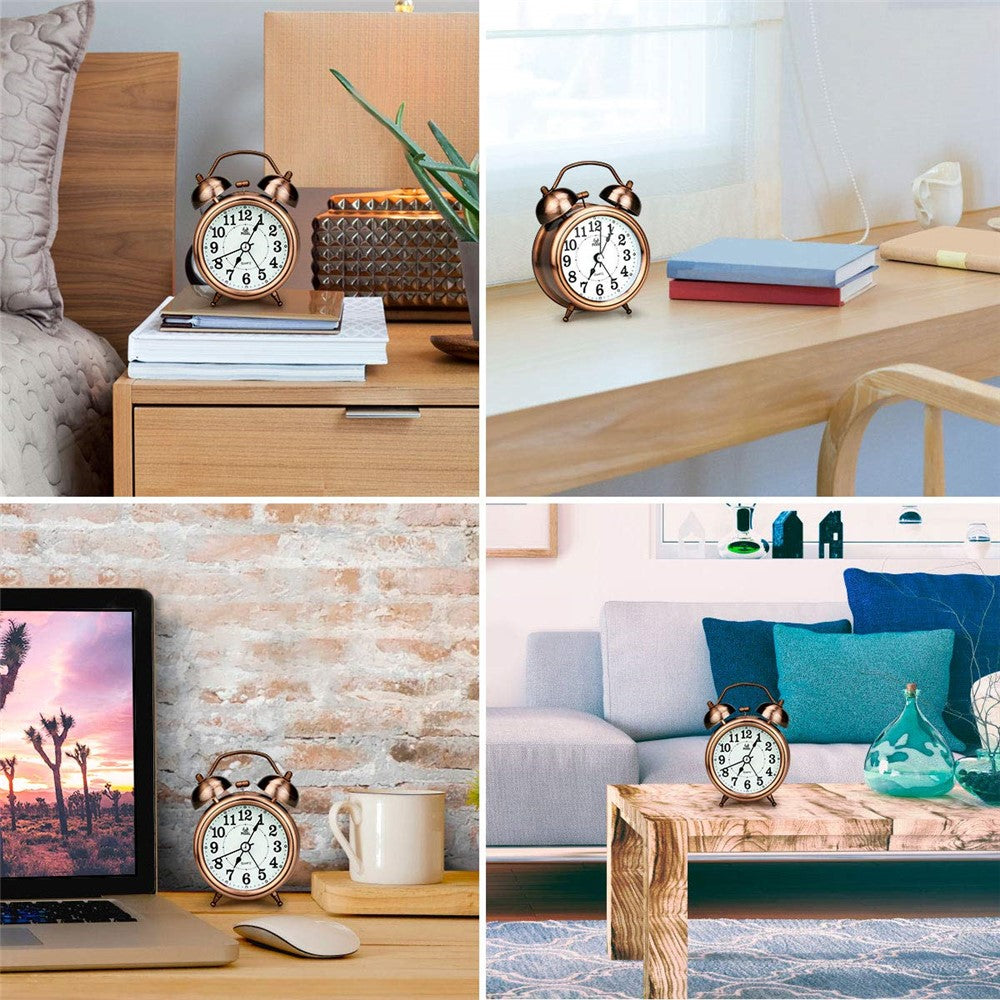 Retro Metal Plating Battery Powered Silent Non-Ticking Quartz Twin Bell Alarm Clock