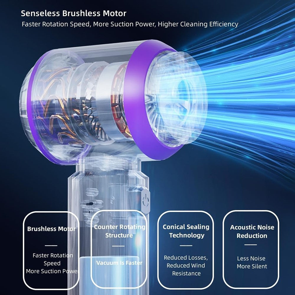• Brushless Motor Vacuum: This is a handheld vacuum cleaner that combines power and versatility to meet all your cleaning needs, this vacuum cleaner features a brushless motor for superior performance and efficiency
