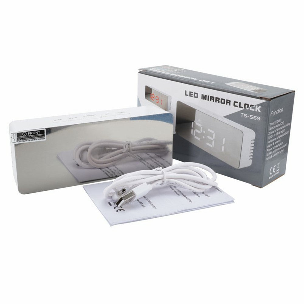 TS-S69 LED Digital Display Multifunction Clock Desk Makeup Mirror Alarm Clock with Temperature