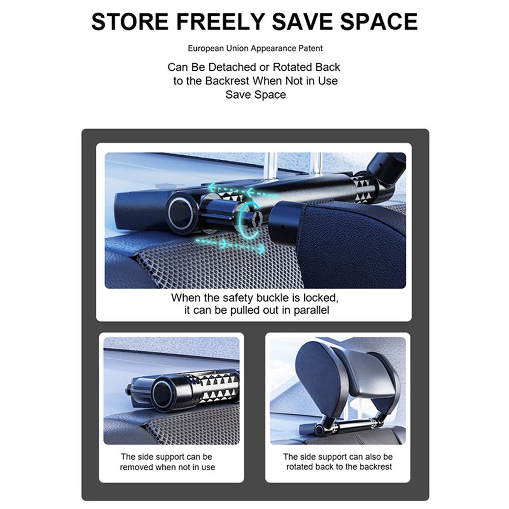 • Headrest Pillow design adds phone holder, portable hook and solid aromatherapy box function, rear side passengers can always fix their cell phones on the bracket