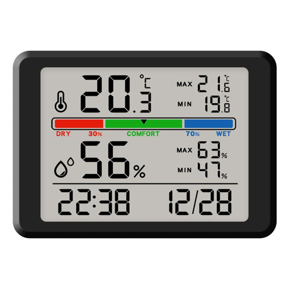 • 【Comprehensive Information】All-in-one screen displays time, temperature, humidity, date, and comfort level with a soft backlight for easy viewing.