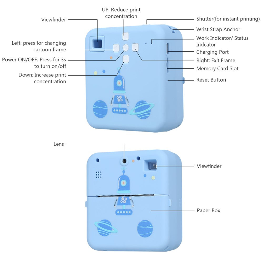 K12 Kids Digital Camera Thermal Printer Lightweight Portable Front / Rear HD Dual Lens Camera