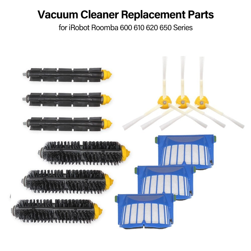 Vacuum Cleaner Replacement Part 3 Filter 3 Side Brush 3 Bristle Brush Accessory for iRobot Roomba 600 610 620 650 Series